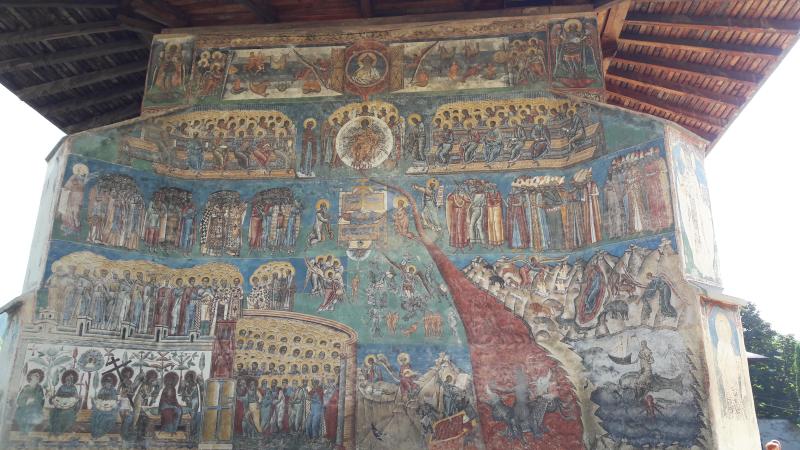 Sunday, August 23: Depart for the Bucovina region in the northeast of Romania, pausing for lunch at the top of the Mestecăniș mountain pass connecting Transylvania and Moldova. Bucovina is known for monasteries whose exterior and interior walls are decorated with elaborate 15th and 16th-century frescoes, masterpieces of Byzantine art. Of these churches, 8 are listed as World Heritage sites. Before settling in at Hotel Forest Green & Spa in Gura Humorului for two nights, we stop at our first UNESCO-listed monastery, Voroneț.